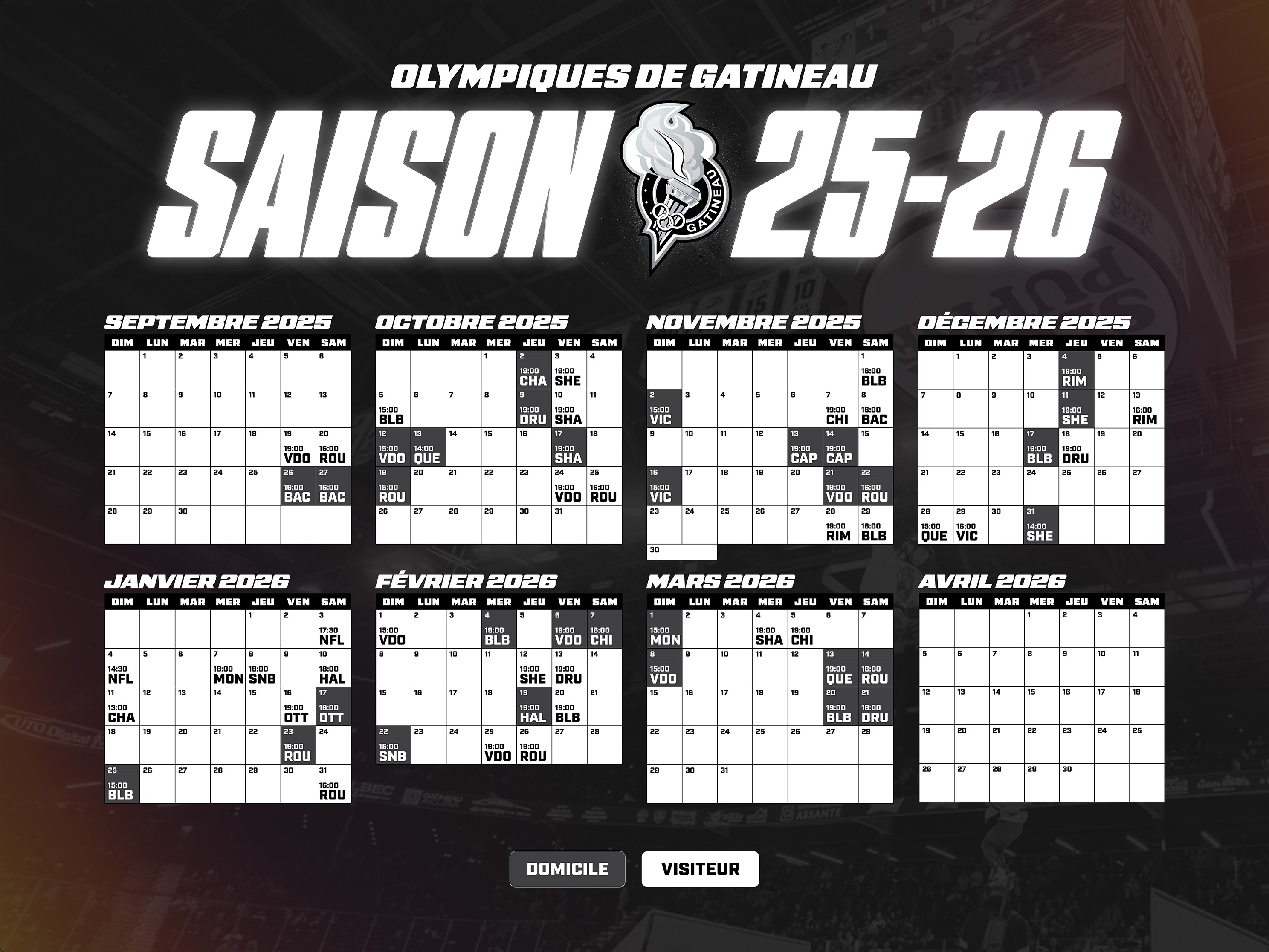 1. Le concours « Gagnez vos billets des Olympiques » (le « Concours ») est organisé par Cogeco Média Inc. (« Cogeco ») et Roch St-Jacques (collectivement l’« Organisateur »). Il débute le 24 septembre 2025 à 12h (HAE) et se termine le 25 mars 2026 à 13h59 (HNE). Toute mention au présent règlement relative à l’heure fait référence à l’heure avancée de l’est (HAE).