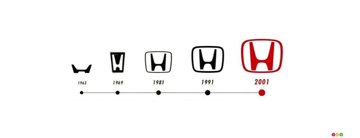 Il s'agit de la cinquième version du logo « H » depuis ses débuts en 1963. La mise à jour de 1981 coïncidait avec la période où Honda a commencé à s'implanter en Amérique du Nord. Le logo actuel, avec sa bordure épaisse, date de 1991 ; elle a ensuite subit une légère modification en 2001.